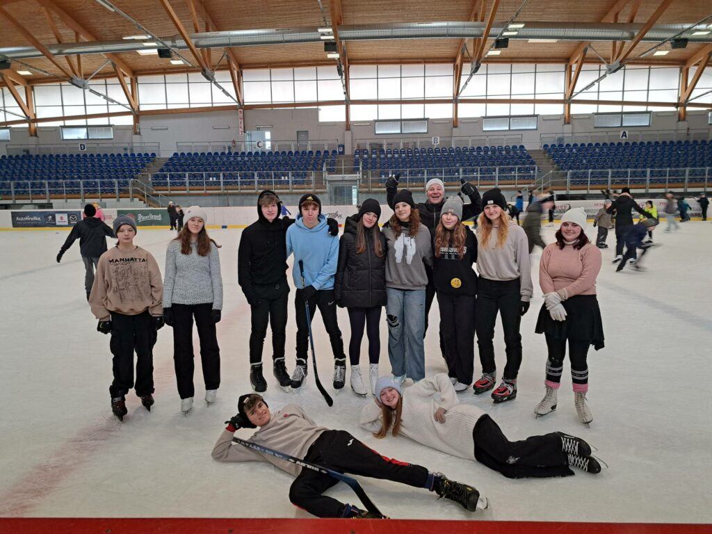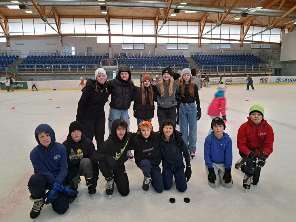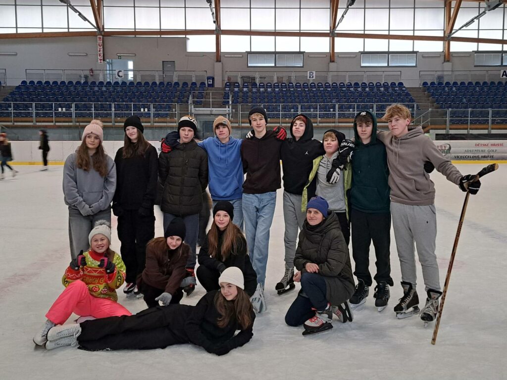 Zima je v plném proudu, a proto byl nejvyšší čas vytáhnout brusle a vypilovat techniku bruslení. Malí, velcí, bruslaři, nebruslaři, všichni sebrali odvahu, nasadili kulichy, rukavice a hupli na ledovou plochu v Buly aréně. Místo sezení v lavicích jsme vysvědčení oslavili sportem. Pomyslnou třešničkou na ledovém dortu byl vynikající punč a sledování tréninku hokejistů HC Rytíři Kladno.