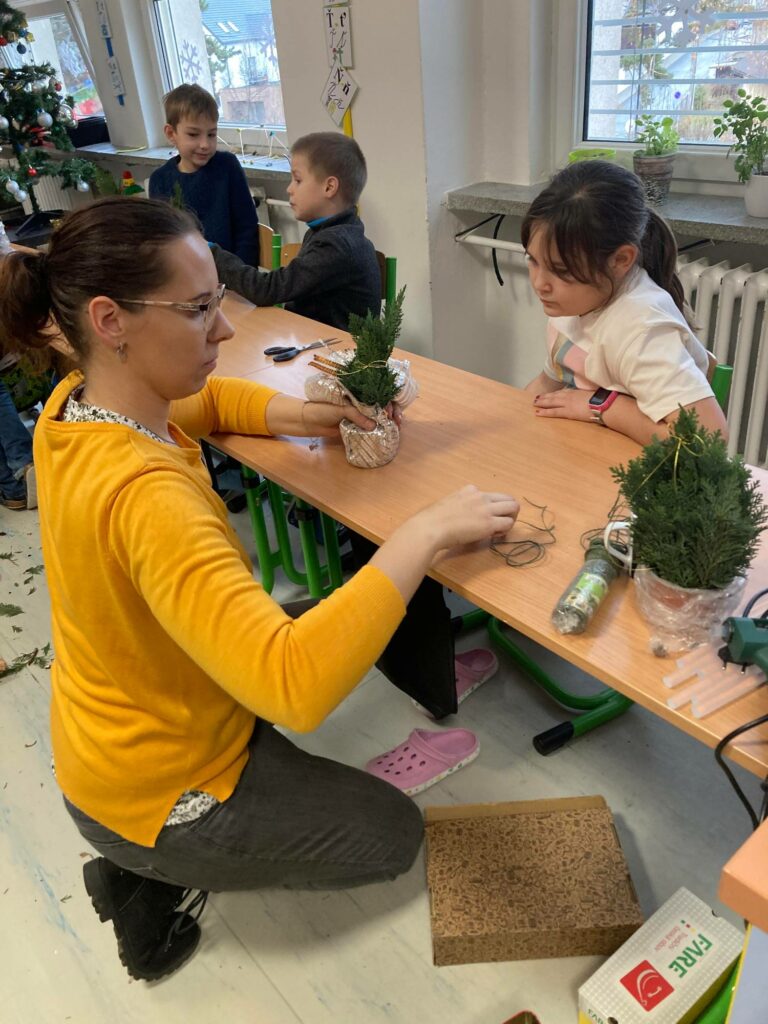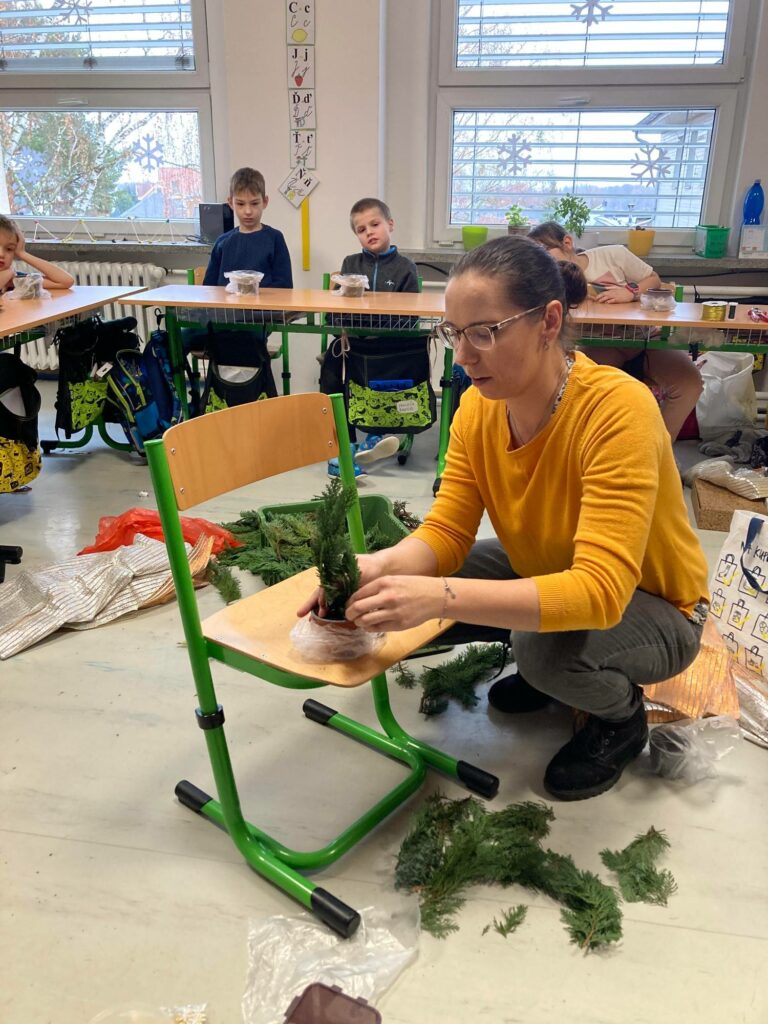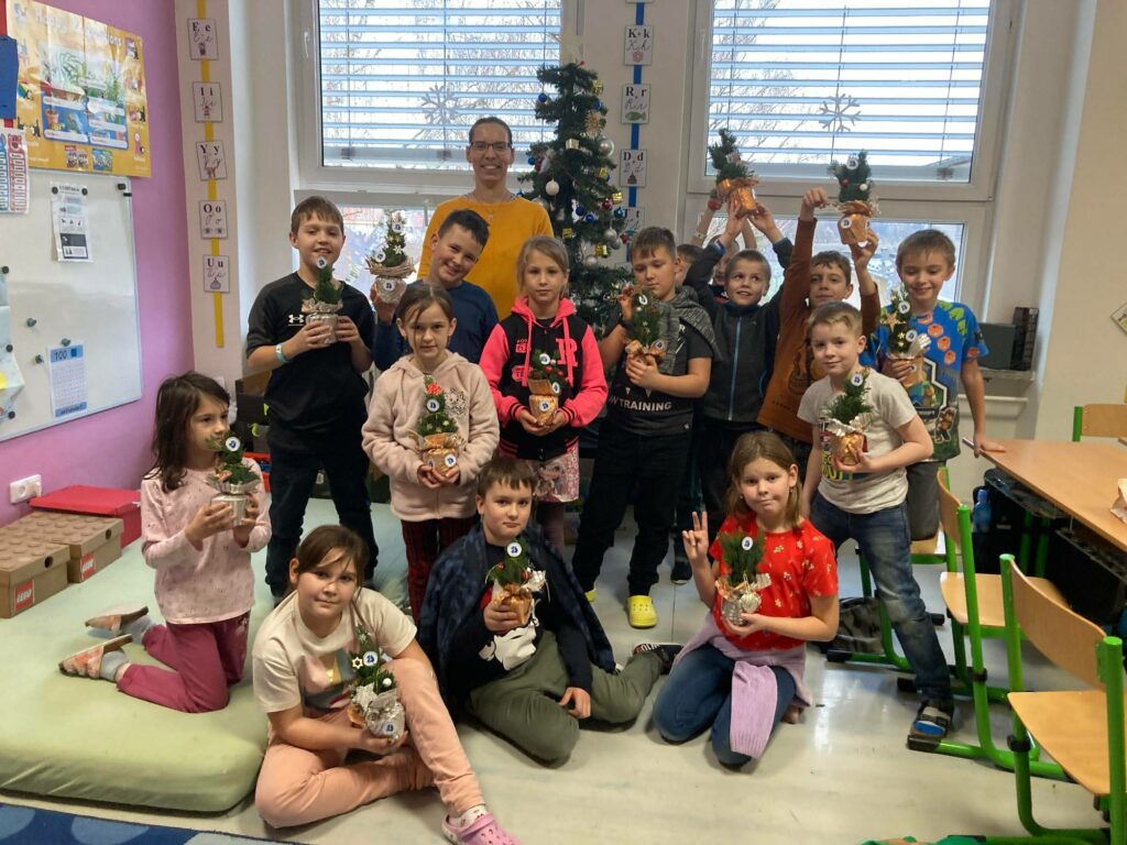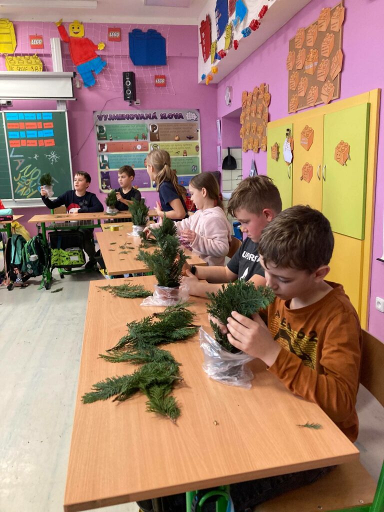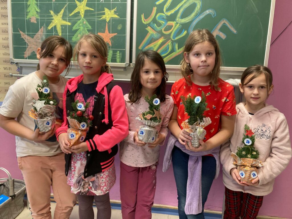 Tento projekt Nadace České spořitelny, díky kterému je možné pozvat si do školy odborníka z mnoha oborů, který žákům přiblíží svou profesi, ať už besedou, přednáškou, ale i praktickými ukázkami, mě inspiroval k pozvání floristky paní Karolíny Černínové právě do naší školy, do třídy III. B. Setkání to bylo velmi zajímavé. Děti se dozvěděly, co obnáší práce floristky, jak vypadá její pracovní den, co ji baví nejvíce. Protože Vánoce už opravdu ťukají na dveře, tak si pro děti připravila vánoční úkol, a to vyrobit rodičům dáreček v podobě nazdobeného stromečku. Děti práce moc bavila. Jejich vánoční a zároveň výroční stromečky se opravdu povedly.