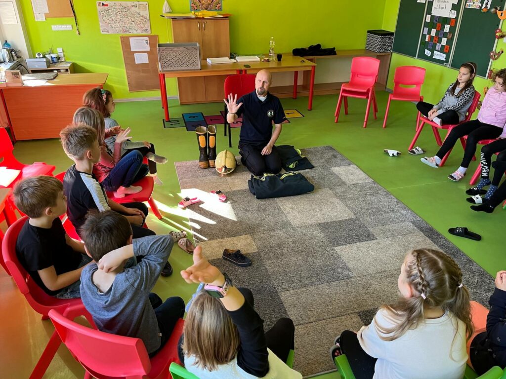 Tuto otázku zodpověděl žákům 2. a 6. tříd por. Ing. Roman Holubec. Člen hasičského záchranného sboru, který každoročně zavítá na naši školu s preventivně výchovným programem Hasík.