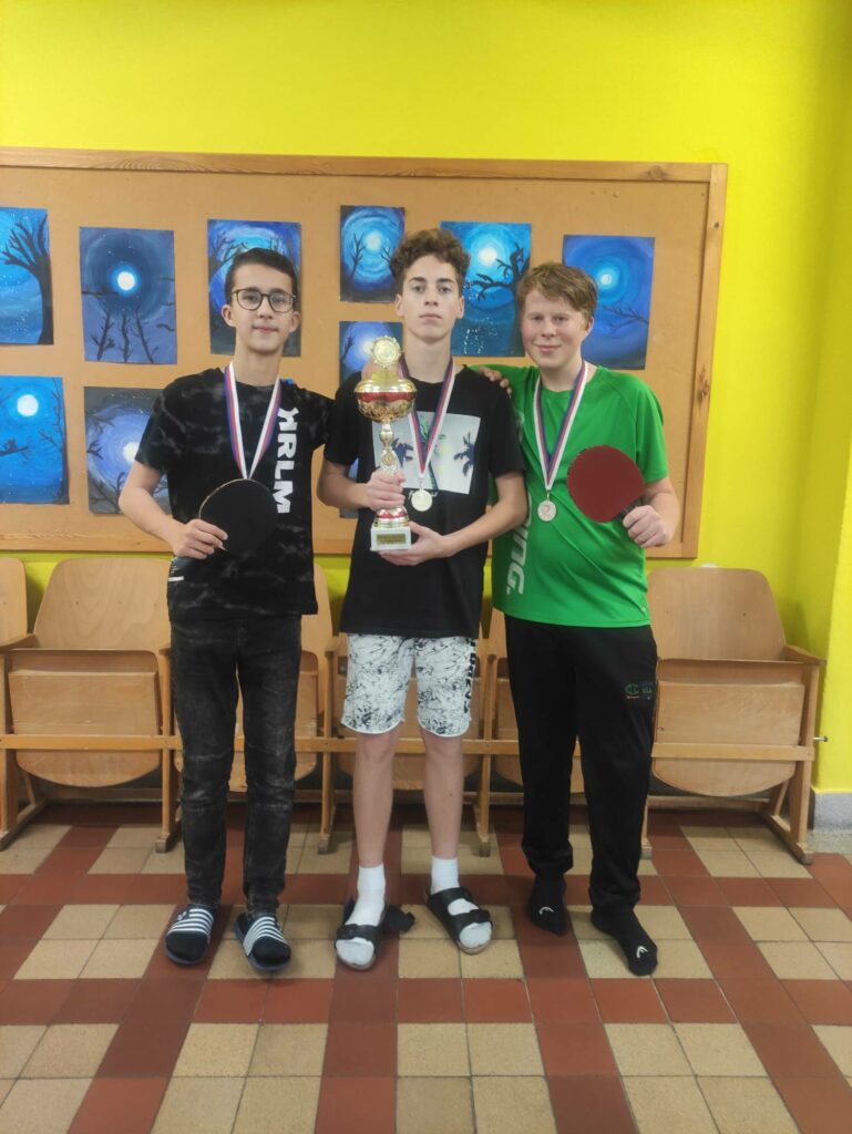 Ve středu 13. 12. 23 proběhl školní pingpongový turnaj. Kluci skoro každou přestávku trénují, a proto nebylo nouze o zajímavé a dramatické souboje. V kategorii mladších žáků zvítězil Lukáš Mikolajský před Patrikem Golou a Danem Čaverou. Mezi staršími žáky byl bezkonkurenční Gabriel Thomas. Na stupních vítězů se umístil i druhý Vilém Mašín a třetí Ondřej Hollesch. Poděkování patří také ostatním soutěžícím, kteří se sice medailově neumístili, ale díky své účasti přispěli ke kvalitnímu turnaji.