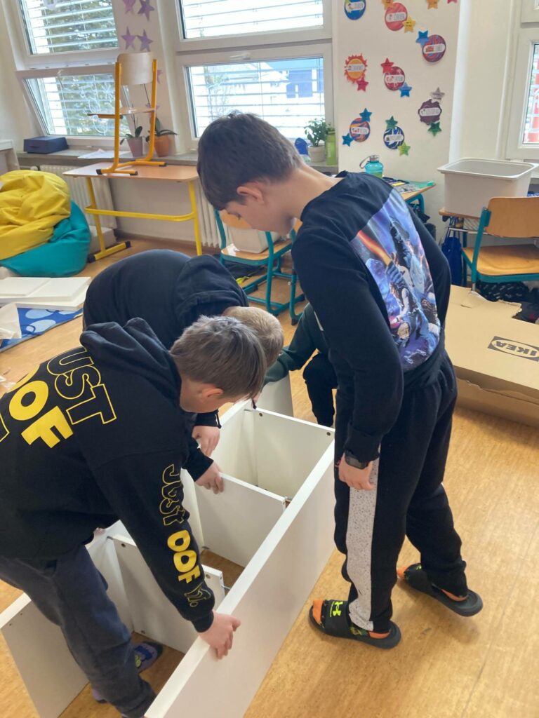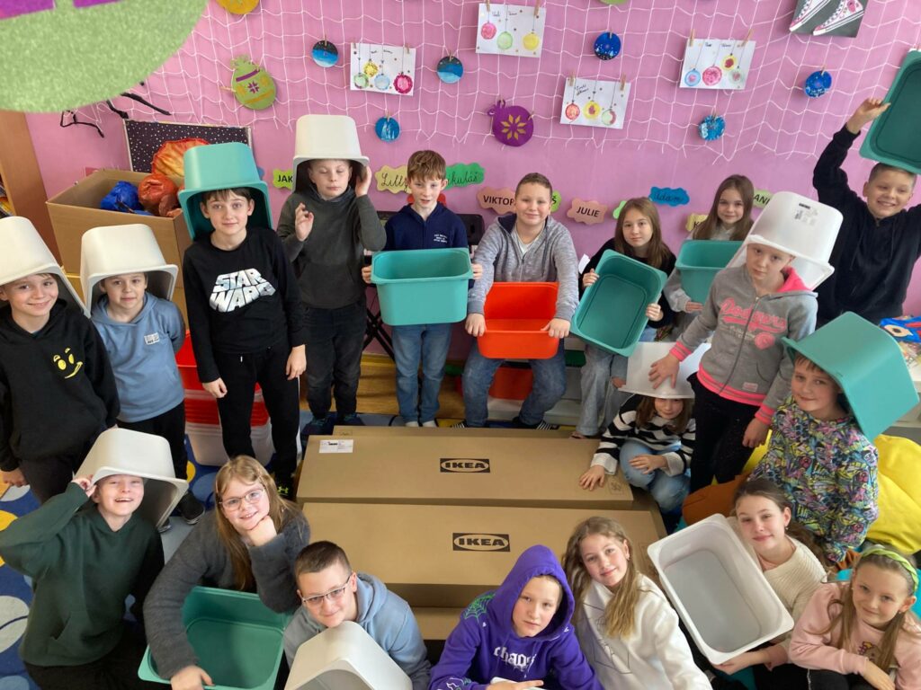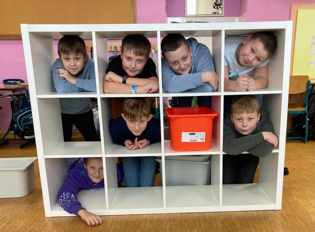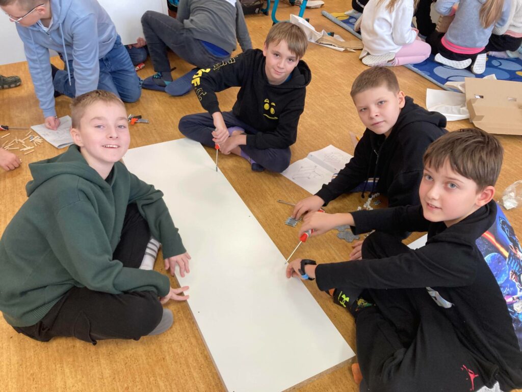 Žáci 5. třídy se konečně dočkali odměny za 3. místo v soutěži Zažij vesmír. Návody létaly vzduchem, šroubky cinkaly, padaly různé rady, jak na to. Nakonec se všem skupinkám podařilo svůj policový díl sestavit bez komplikací a výsledek vypadá skvěle.