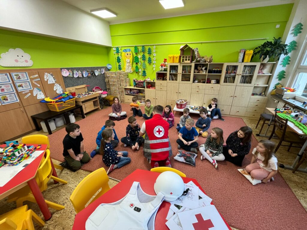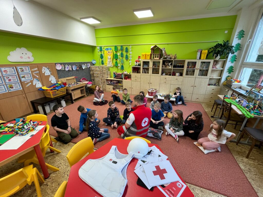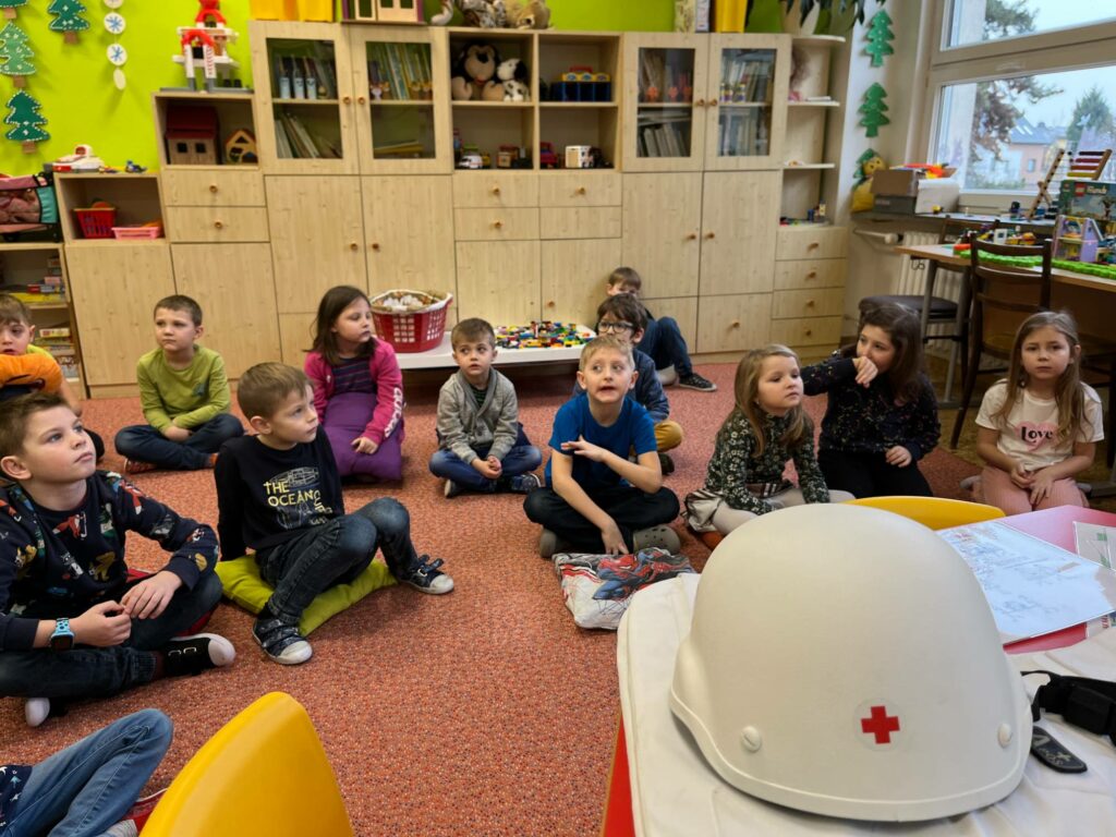 Pan Rother začal tím, že nám přiblížil historii Červeného kříže. Vysvětlil nám, jak tato organizace vznikla a jak se vyvinula od svého založení. Zajímavým způsobem propojil historické události s aktuálními humanitárními misemi Červeného kříže po celém světě.