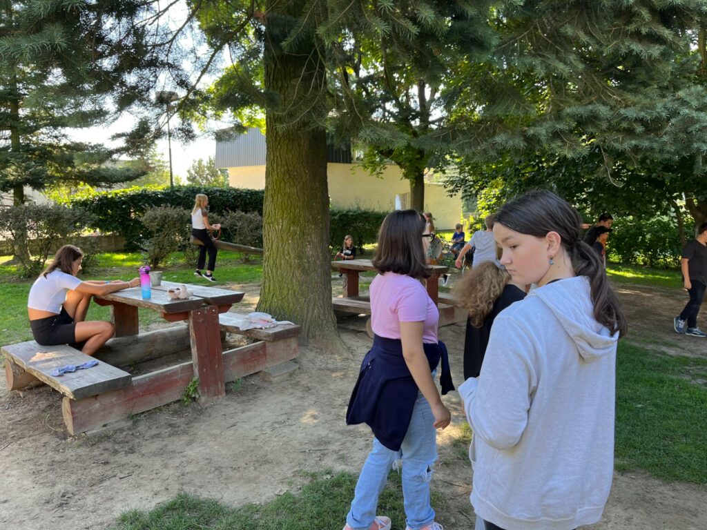 Žáci prožívají první školní dny. Protože v lavicích se určitě nasedí víc než dost, užívají si ještě slunečného počasí. A to i tak, že se probírají zapomenutými věcmi ze školních šaten. Co myslíte, našli ty své? Šesťáci využili k aktivnímu odpočinku zámeckého parku a seznamují se s novými spolužáky z Chlebičova a Malých Hoštic. A od zítřka už podle rozvrhu…