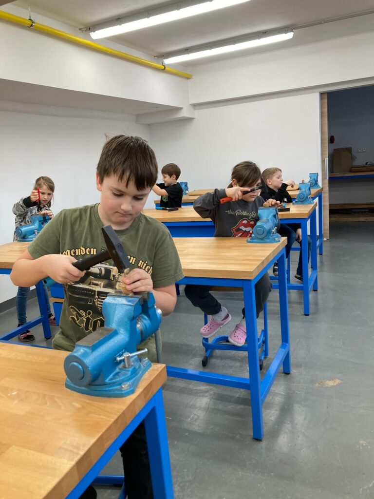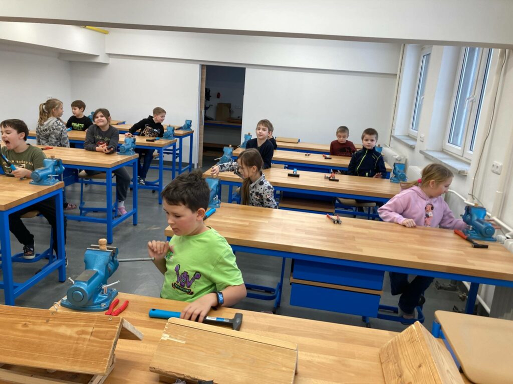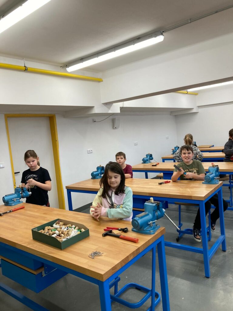Pamatujete na dílny na „základce“? Já rozhodně ano! Byly to mé oblíbené hodiny. A vypadá to, že třeťáci z béčka jsou po mně. Dnešní pracovní činnosti totiž probíhaly v našich nově zrekonstruovaných dílnách. A učebna je to teda pořádně vymakaná. Najdete tam vše, co potřebuje správný kutil. Děti byly naprosto nadšené. Nejvíce je zaujal svěrák. „Jo, to je ten herec, Svěrák!“ Ale seznámily se i s dalším nářadím, které si mohly vyzkoušet. Protože jsme tam dnes byli poprvé, tak to byla spíše taková „seznamovačka“. Příště už určitě něco pěkného vyrobíme a pochlubíme se.