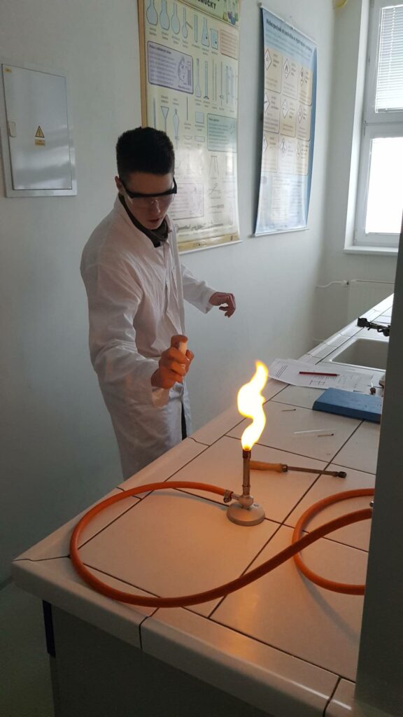 Dopoledne plné akcí a reakcí třídy 8. A na Gymnáziu Josefa Kainara Hlučíně. V laboratoři jsme si pohráli s barvami i ohněm. Vyzkoušeli si práci s chemickými prvky, poznali jejich vlastnosti a získali nové informace. Čekalo na nás napětí a adrenalin. Viděli jsme reagovat vodík, kyslík, měď a jiné prvky. Po praxi jsme si ověřili teoretické vědomosti, které jsme doposud v oblasti chemie získali. A v neposlední řadě byla pro nás připravena přednáška na téma jaderná energie, která byla velmi zajímavá. Chemie nás bavila a snad bude bavit dál.
