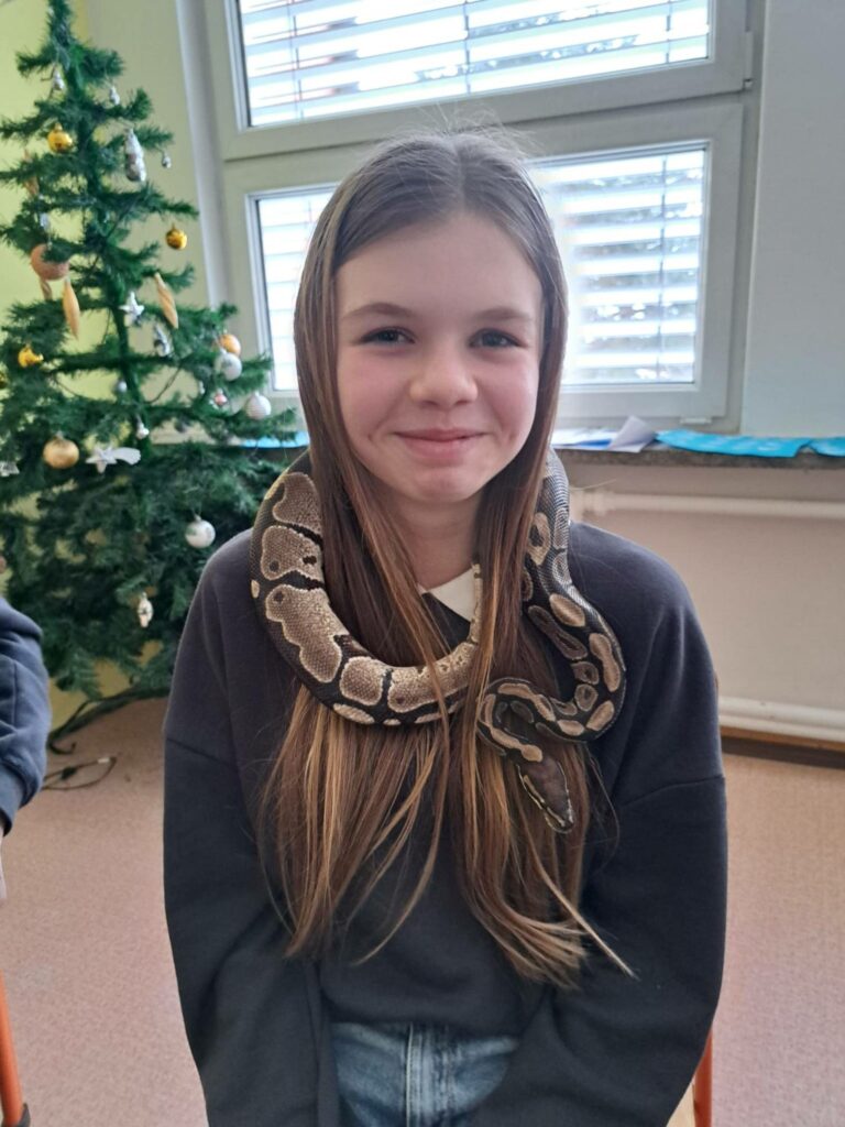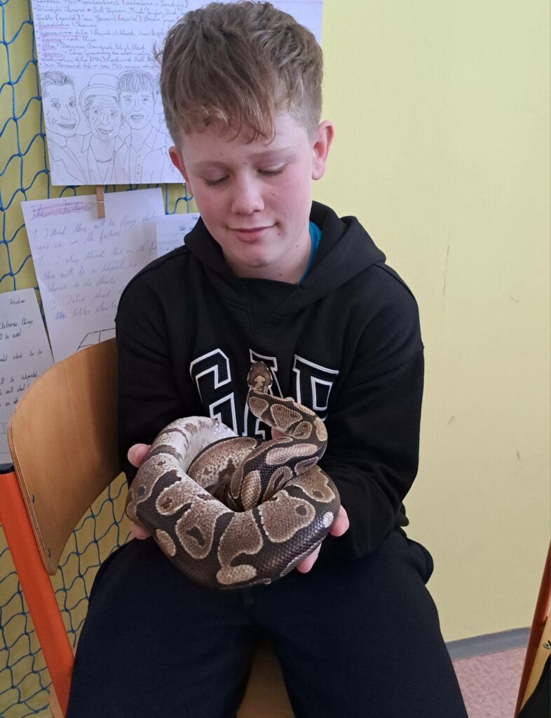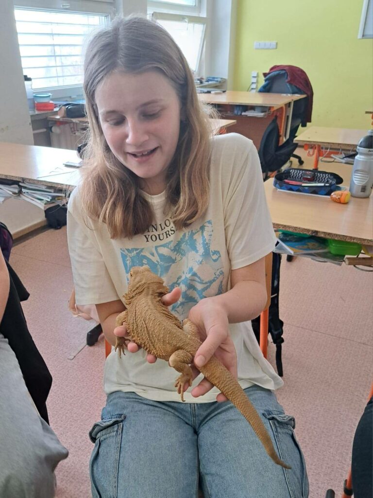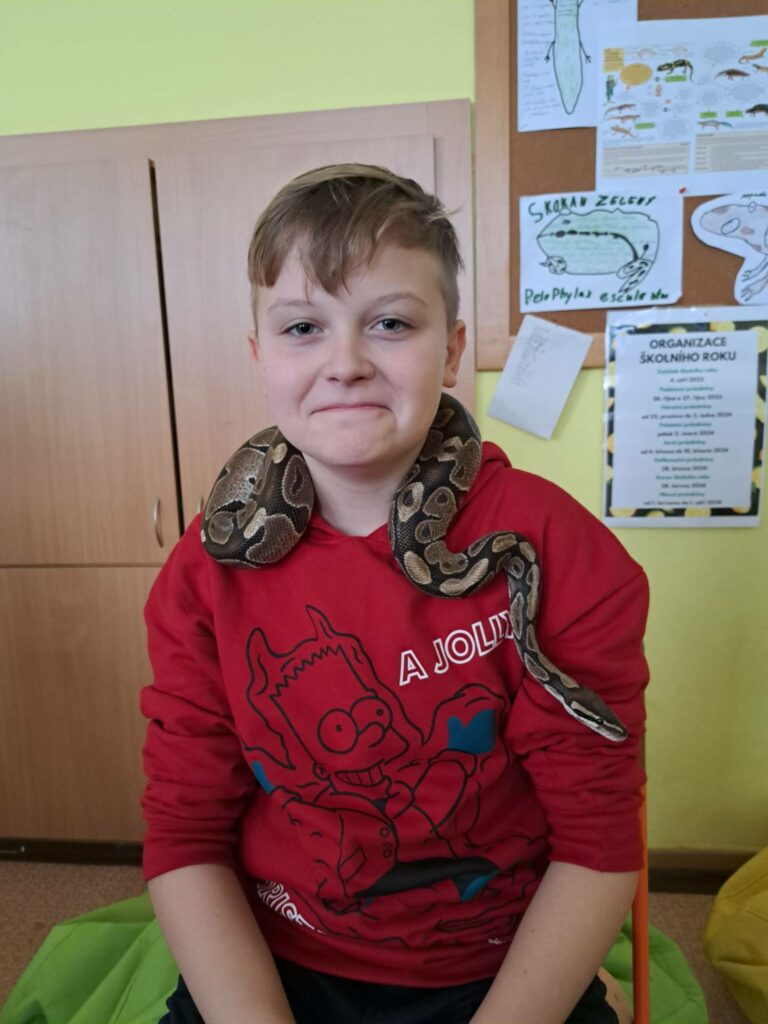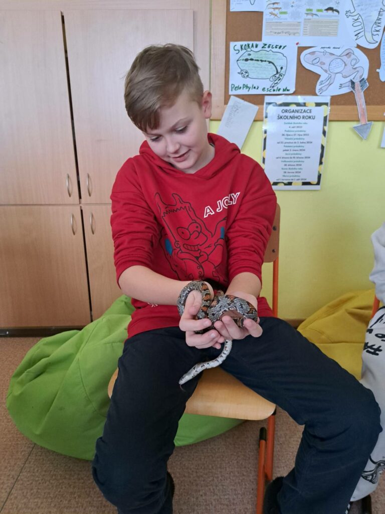 Dne 11. ledna 2024 proběhla na naší škole beseda na téma Plazi, které se zúčastnili žáci 7. třídy. Cílem besedy bylo nejen poznání, že plazi nejsou pouze nebezpeční a jedovatí, natož slizcí, ale i seznámit žáky s jejich způsobem života. Program byl obohacen o ukázku živých exemplářů. Někteří žáci dokonce odložili strach a nechali si hady a ještěry doslova připustit k tělu. Během besedy byl prostor i na všetečné otázky. Předností besedy byl kontakt se zvířaty. Konkrétně se želvou, agamou, užovkou a korálovkou.